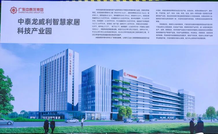 据介绍,中泰龙威利智慧家居科技产业园项目位于中山市南区科学城树涌工业园,总建筑面积约25万平方米,从一块平地到拔地而起历时仅10个月,充分展示“敢拼敢干敢打仗”的中泰龙精神。项目计划在2022年12月完成主体工程和装修工程,于2023年3月完成设备安装、调试及投产。项目本着绿色环保与共性工厂的建设策略,以现代工业4.0家居智能制造园区为设计目标,拟建成采用现代化流水生产线,数字化、智能化生产,集产品开发、生产、检测、仓储、物流、生活、娱乐一体的现代化家居科技产业园。该项目是中泰龙集团积极践行“三旧”改造政策,在推动低效工业园改造方面迈出的坚实的一步,亦是响应国家科技强国,创新驱动发展战略的积极举措。