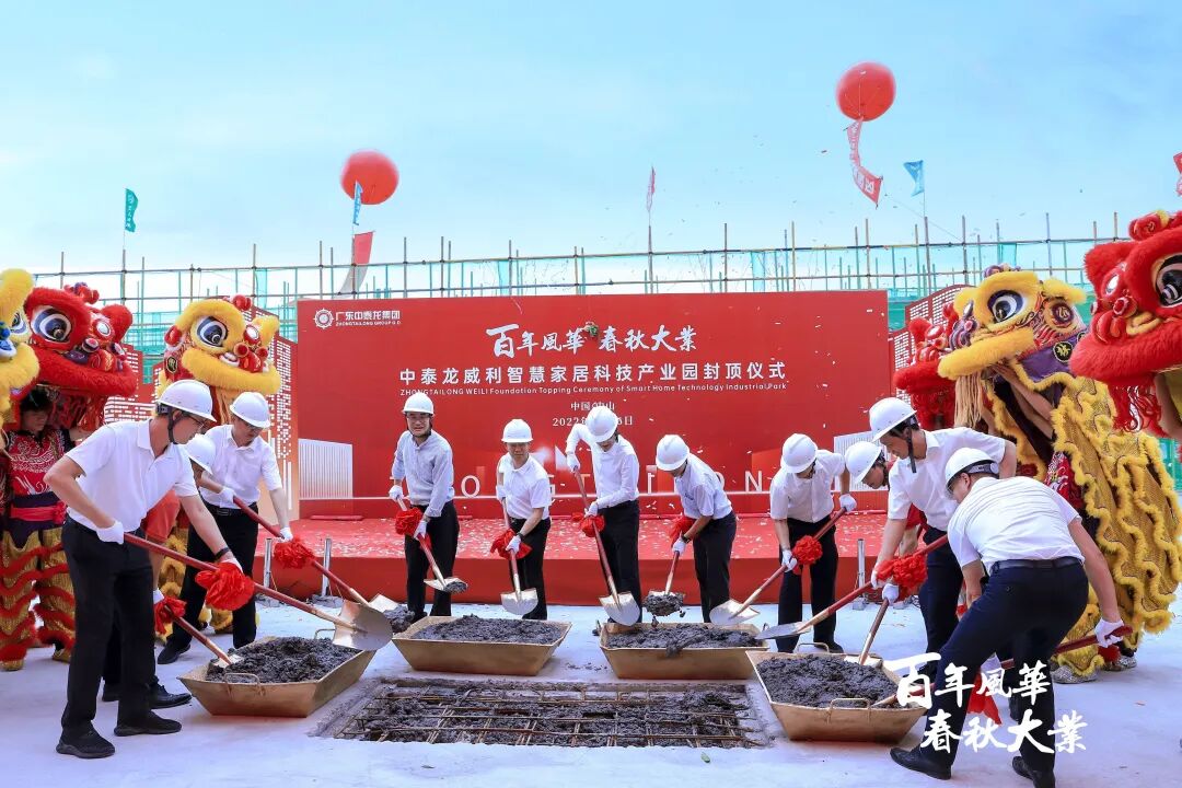 百年风华,春秋大业。9月26日,中泰龙威利智慧家居科技产业园项目顺利封顶。中山市副市长周作德、南区街道党工委书记吴翘楚、南区街道办事处主任谢军杰,广东省家具协会会长王克,省家具协会执行会长:广东中泰龙集团董事长陈秋桂、中山华盛家具公司董事长(中山办公家具协会会长)姚永红,省家具协会副会长、中山家具商会会长李剑文等出席封顶仪式。