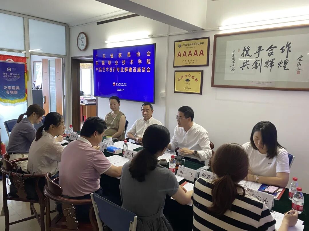 7月7日上午,东莞职业技术学院、广东职教桥数据科技有限公司一行来访广东省家具协会,就东莞职院产品艺术专业群建设进行座谈。省人大代表、广东家协王克会长,广东家协张承志执行会长兼秘书长热情接待。