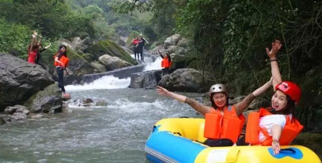 在较为刺激惊险的河段尽情的尖叫呐喊,让自己的叫声响彻山谷。
