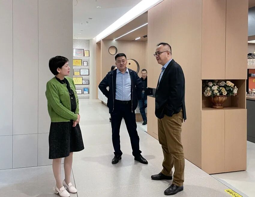 11月6日,协会执行会长兼秘书长徐宝传到协会理事单位——青岛圣菲集成家居有限公司考察,与总经理蓝红蕾进行了交流,并为其授牌。总经理蓝红蕾陪同徐秘书长一行参观了正在装修的新展厅。新展厅融入了200多处互动体验场景,让客户能亲身感受不同五金、材质等带来的视觉和触觉体验。徐秘书长参观后,对展厅的空间布局、材质选择、色彩搭配、展示内容、灯光设计以及人性化装修等方面给出了合理化的建议。