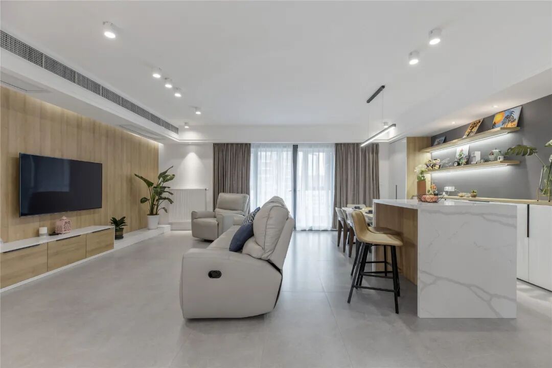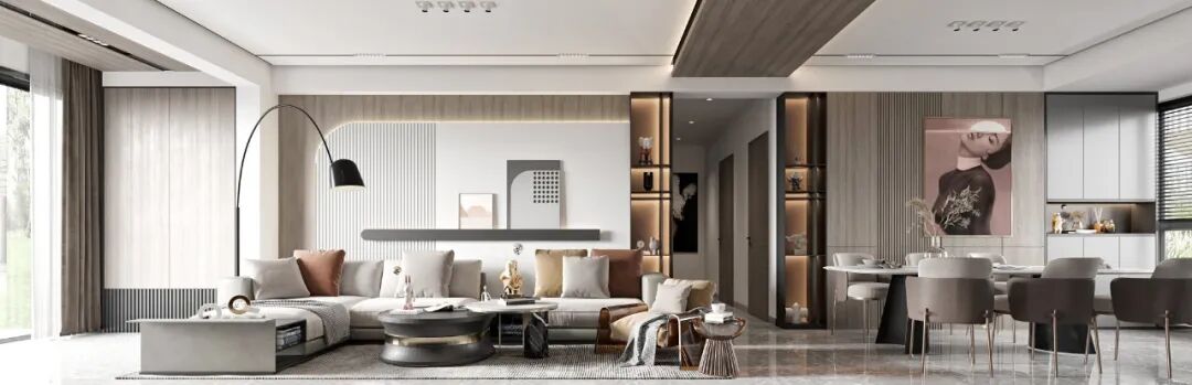 家中使用率最高,人群最多的区域。一般都会做无主灯设计,还可以添加一些辅助灯,方便不同气氛时能配合不同的照明。