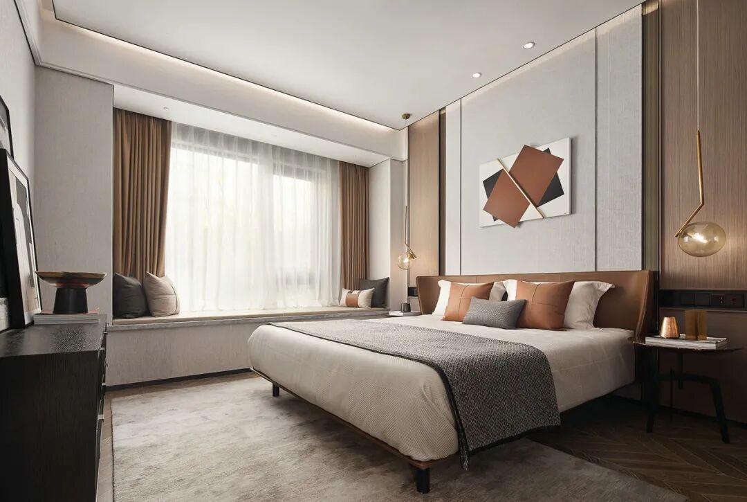 休息的地方天花板灯不要太刺眼。灯具整体位置低的话,会更让人放松,也可以加装其他灯具效果也可更好。有睡前阅读习惯的朋友可以设置一个阅读灯,老人房和儿童房也很有必要做个感应式小夜灯,方便起夜。