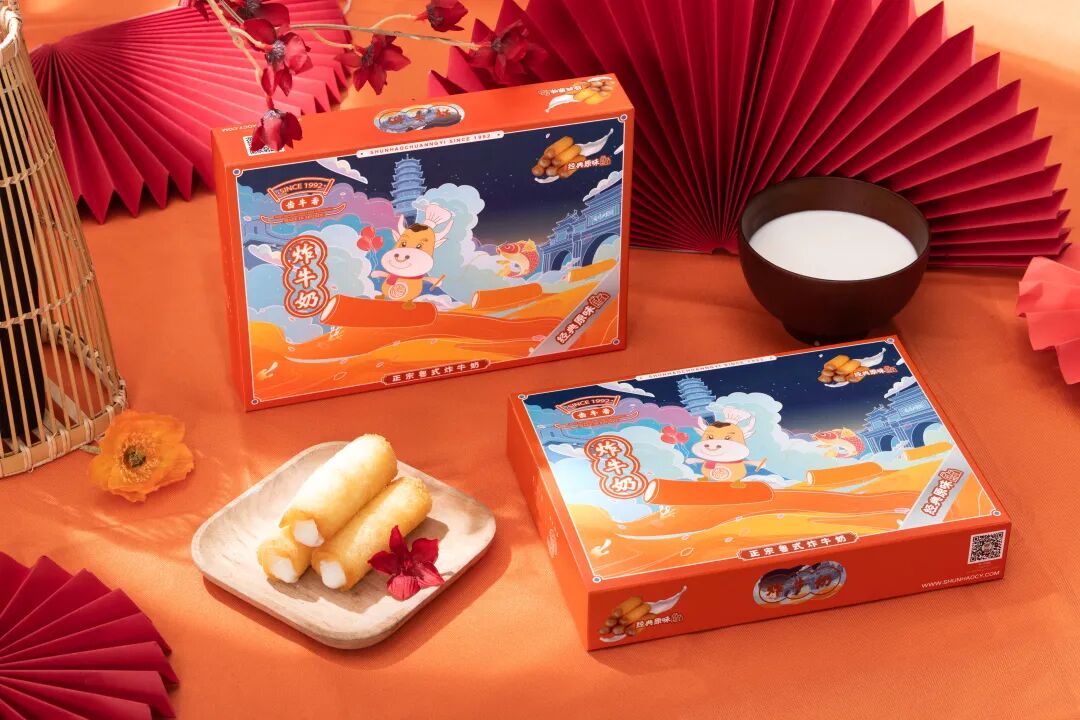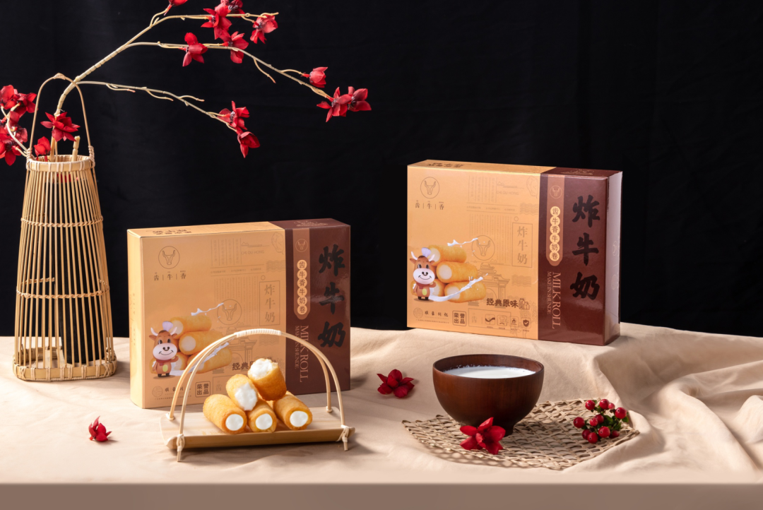 顺豪创亿,始创于2015年是一家专注于研发、生产、配送水牛奶类食品开发的公司,旗下拥有鲜粤、齿牛香两个子品牌,拥有炸牛奶、瓶装水牛奶、水牛奶蛋挞、水牛奶流心包等创意粤式菜品点心。2019年顺豪创亿完成年销售超1亿条炸牛奶的成绩。顺豪创亿食品有限公司成立于2015年,从事生产炸牛奶制作技艺流水线,为发扬顺德炸牛奶制作技艺,郭尧生用了半生时间去钻研,从小作坊到成立公司到规模化生产到发展炸牛奶历史展览厅,这一路上都是经历过无数次失败教训而获取。顺德炸牛奶属于岭南粤菜系,又叫“炸鲜奶” 是一道色香味俱全得名点,为岭南风味压桌菜,传统炸牛奶工序繁多,从开始需准备各项材料,需要花上半天时间,一大锅滚烫牛奶慢火煮滚后,冷却、切条,然后开脆浆,直到晚上上菜前都不停重复7道工序,但是再极致的手艺,也难以掌控好炸牛奶的品相。脆浆开得不好,炸牛奶的表层都会出现破洞;牛奶蛋白对高温格外敏感,油温稍有闪失极易变焦。传统的炸牛奶因花时间、精力90年代末,各大酒楼手工制作的炸牛奶越来越少,出品也良莠不齐。为了更好的传承与保护顺德炸牛奶,并且让广大群众都能吃到好品质的炸牛奶。1997年,郭尧生专心钻研炸牛奶制作技艺,将炸牛奶的工艺进行改良,做成成品来销售,并创立佛山市顺豪创亿食品有限公司成为顺德,乃至珠三角地区餐饮企业炸牛奶的最大供应商专业,年销量为几十万件,远销珠三角知名餐饮店。这还没达到当初成立公司的初衷,当公司各项工作已经慢慢步入轨道时,郭尧生开始想,在创新的道路该如何保存完善炸牛奶制作技艺,稳定了炸牛奶的风味,将炸牛奶的技艺广泛推开,2019年郭尧生斥资修建一个名叫“炸牛奶历史文化展览厅”并由此希望通过申报顺德区非物质文化遗产方式,对外内收集、记录、拍摄等多种形式,集中展示有关于炸牛奶历史文化知识,了解炸牛奶的文化、产品、品质、制作工艺,更可作为客户与观光游客来访、参观、交流、洽谈的地点。并成立专题小组,专门负责对外参加各类宣传、公益等活动,为更好地让广大群众认识炸牛奶文化知识。 产品展示介绍