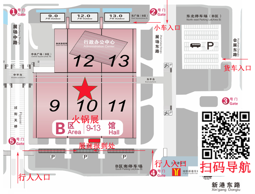 从出发地点导航搜索【广交会展馆B区-2号门】定位展馆,选择合适路线即可。