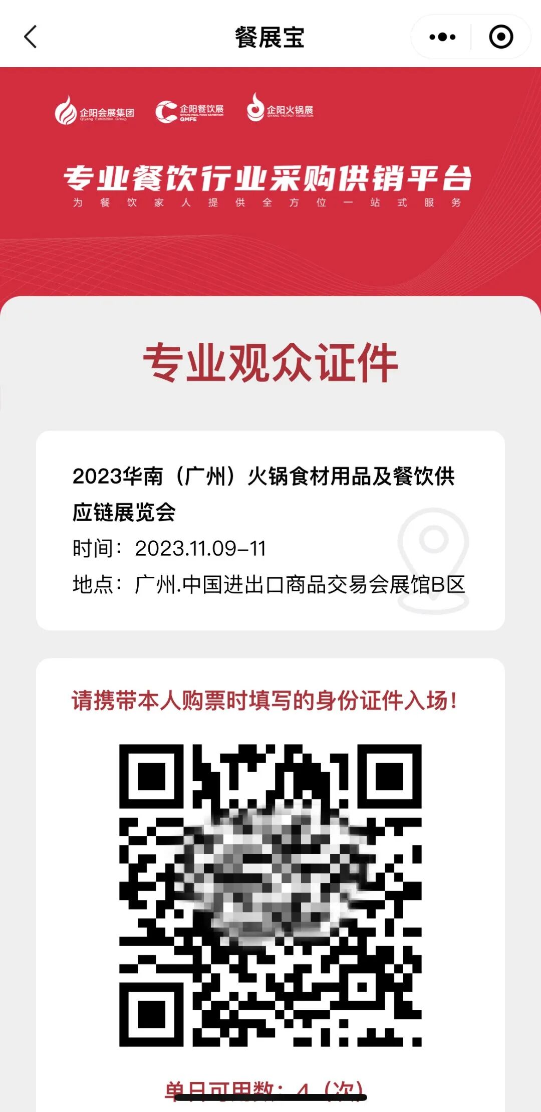 开展在即,为方便观众,保证广大观众便捷顺利参观,广州餐饮展观众“线上免费领票 ”渠道全面开启,在微信搜索餐展宝即可在线完成预登记免费领票轻松观展。