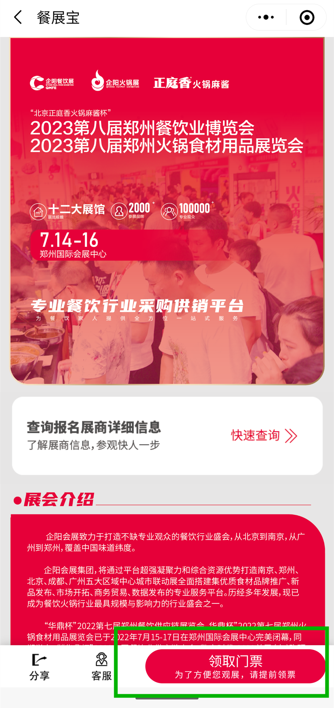 点击上方图片进入“餐展宝”小程序领取郑州展门票