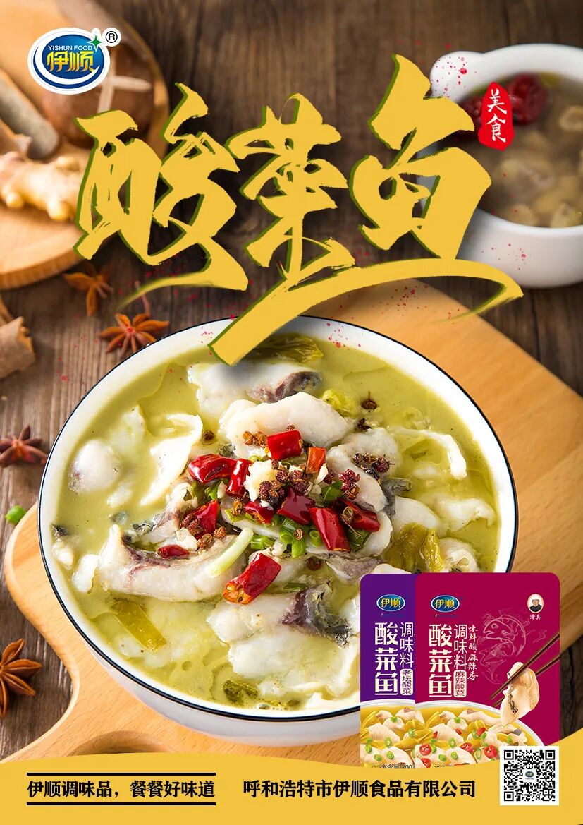 酸菜鱼调味料:汤好喝,味酸爽的复合调味料,吃出你的好心情。有原味和香辣两种口味,适用于鱼类及海鲜类的蒸煮或其它烹饪方式。