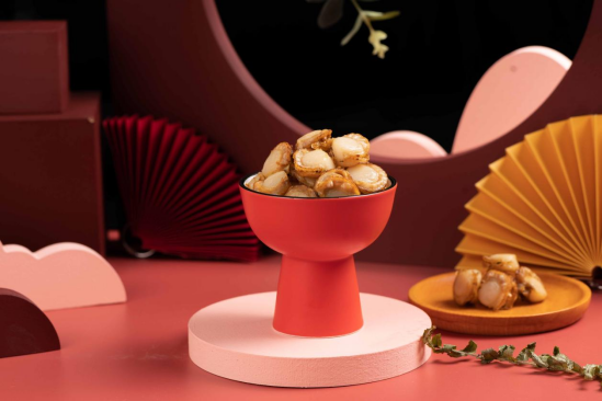 虾夷扇贝:贝肉个大肥美,色泽油亮,饱满多汁,入口爽滑,细嚼Q弹,口感丰富,鲜味藏不住。