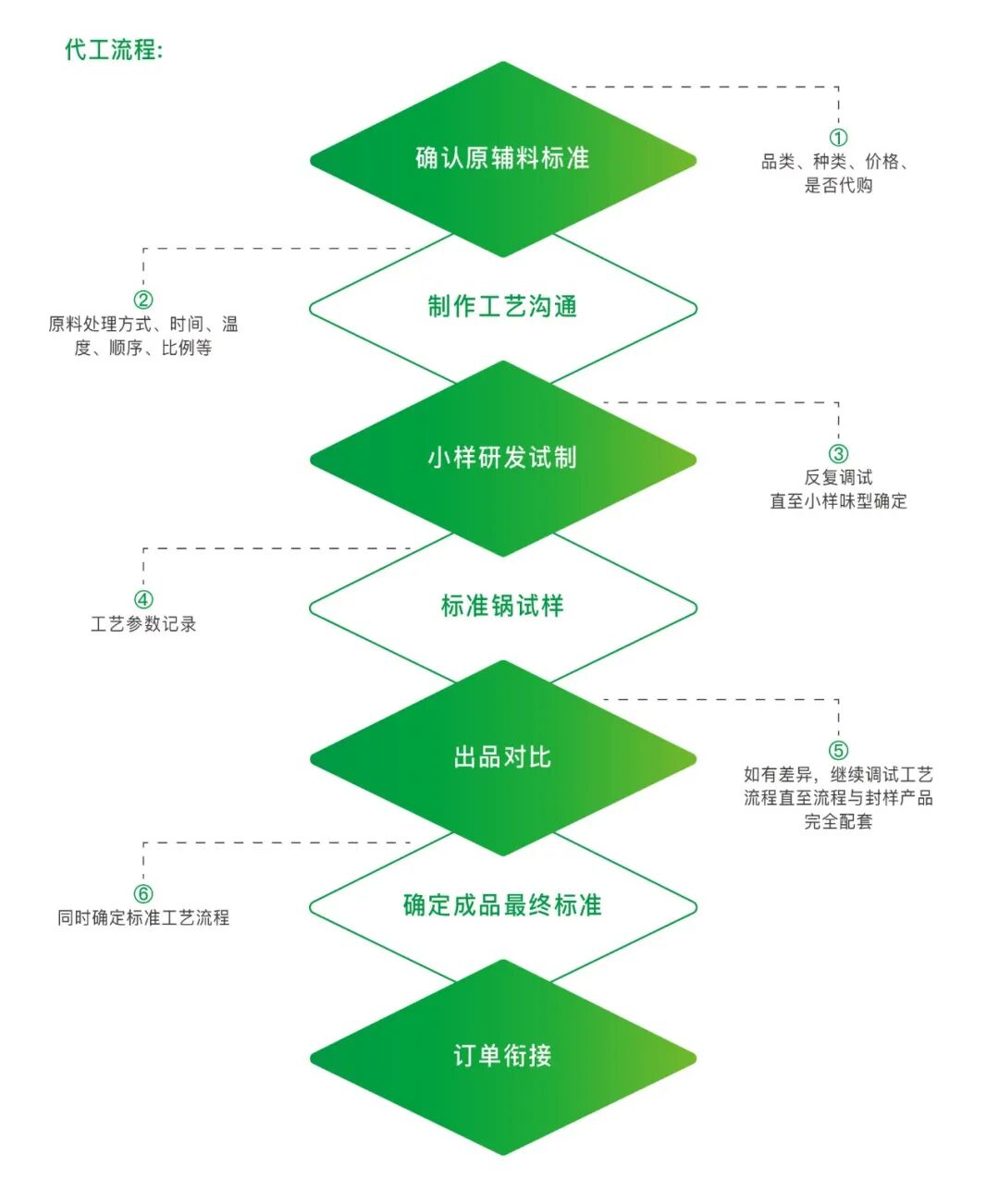 沃味美在卓越的自主研发实力基础上,同步为行业客户提供专业的ODM代工生产服务和OEM贴牌生产服务。以客户需求为主导,形成标准化工艺文件,标准化高稳定性的产品,协助客户在原成本基础上进行控制甚至优化;也可根据客户目标客群进行定向新品研发,从原料采购到成品发货提供一站式标准化服务。通过与国内优秀企业的合作,沃味美已成为行业不可或缺的综合化产品输出平台和打磨基地。
