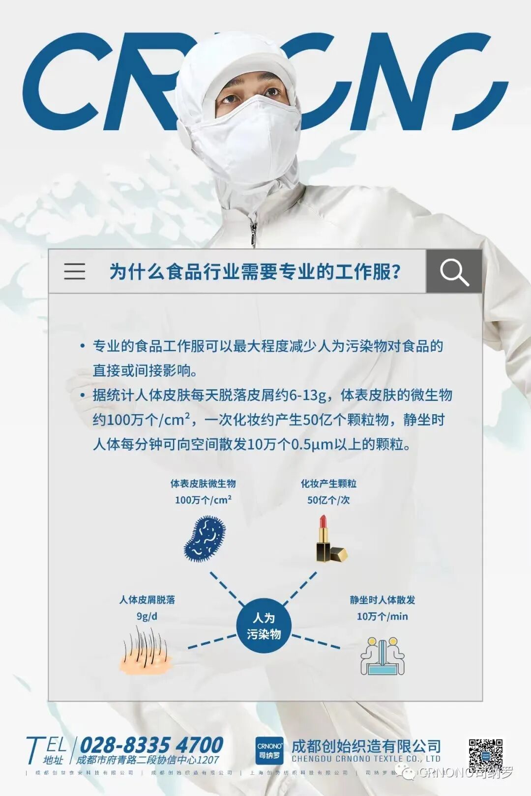 成都创世食安科技有限公司成立于2002年,是一家专注于食品、制药、餐饮烘焙等领域防护服/职业装的专业生产服务商,也是专业食品工作服的全国首例供应商和食品工作服国家标准的主编单位。