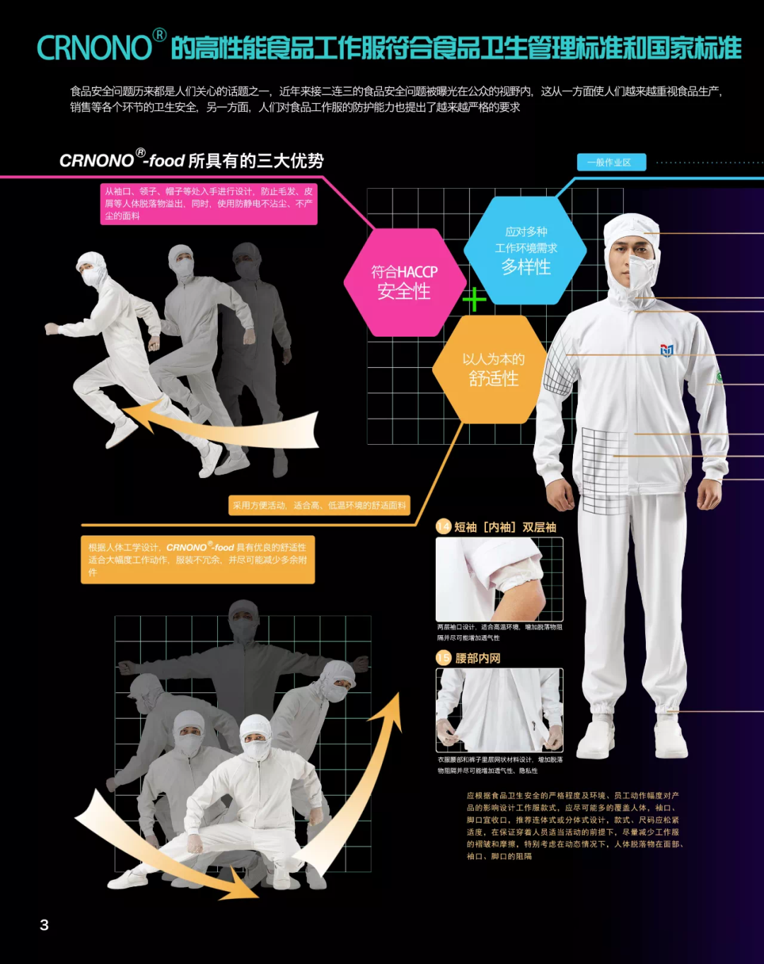 公司以提升食品从业人员服装配套、促进食品质量安全为己任;并聚焦洁净服领域,致力于打造安全舒适的优质产品。