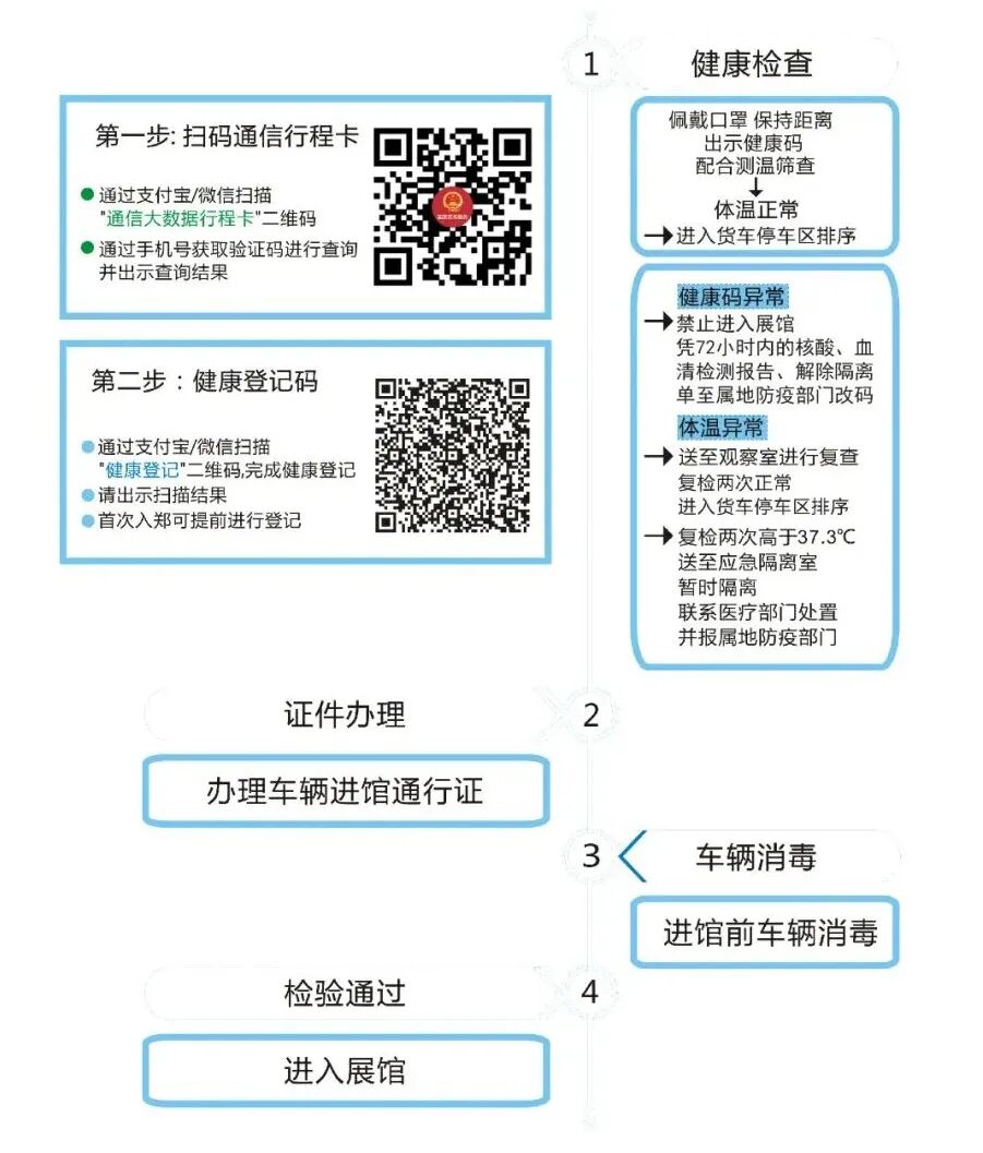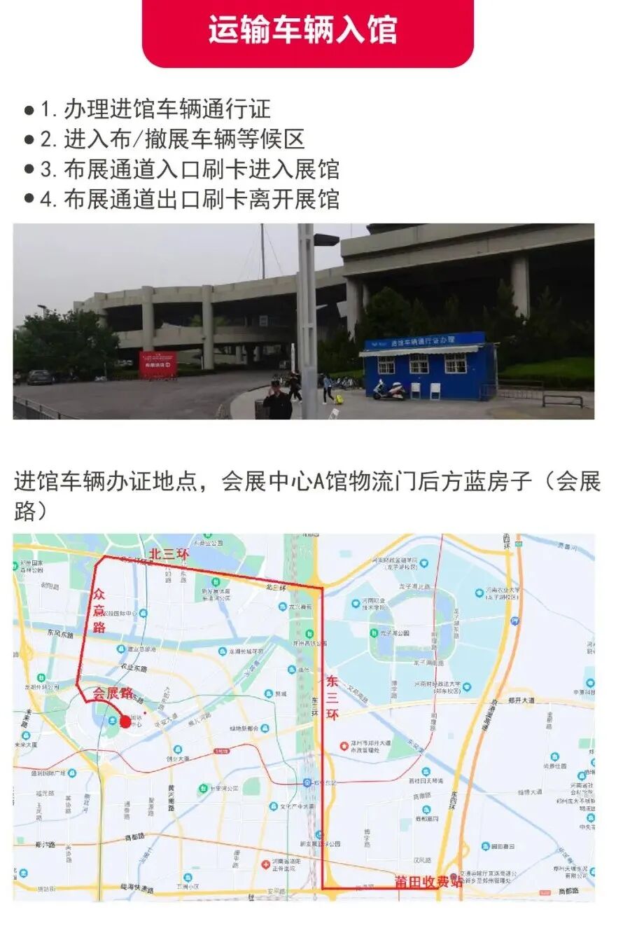 2.妥善保管证件,施工证件仅在施工期制定通道使用;1、展会期间所有进馆车辆需办理相关证件,进馆车辆办证地点位于会展中心A馆物流门后方(会展路)。