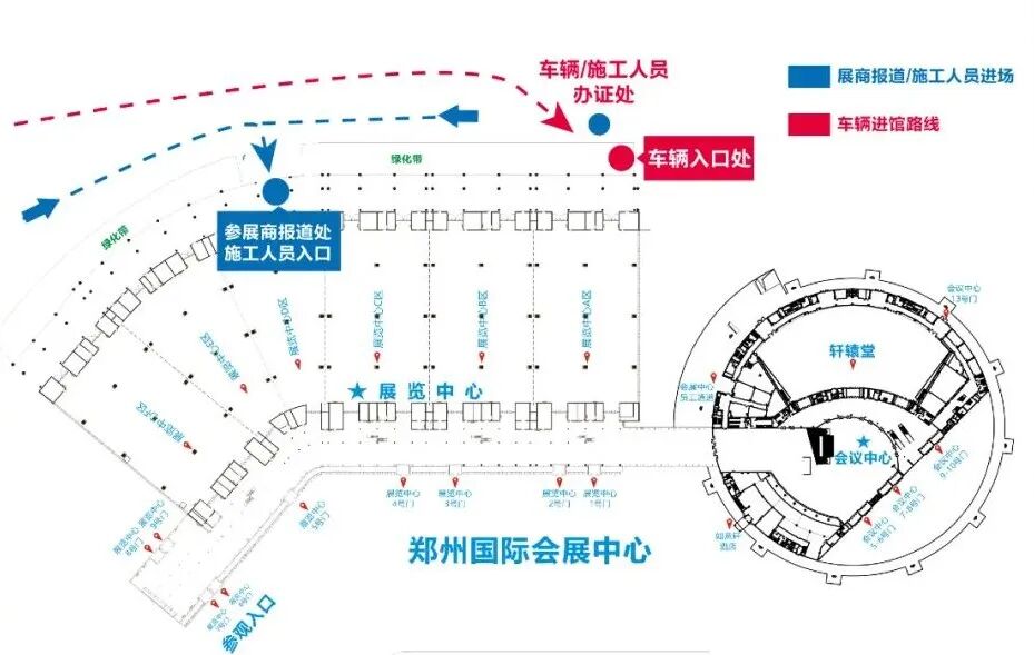 2、布撤展车辆出入口及办证、退换证进馆路线如下图所示↓↓↓