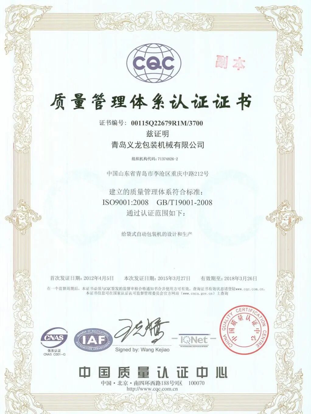 青岛义龙包装机械有限公司创建于1996年,是国家级高新技术企业、专精特新小巨人企业也是中国给袋式自动包装机行业标准(JB/T10797-2007)、国家标准(GB/T 38501-2020)起草制定单位。