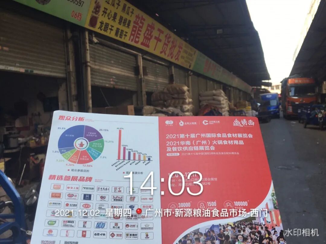 该市场食品批发的商业气氛浓厚,聚集了众多食品批发采购企业,市场内分区较明确,招观团队向对口经销商都派发了邀请函及展会资料。