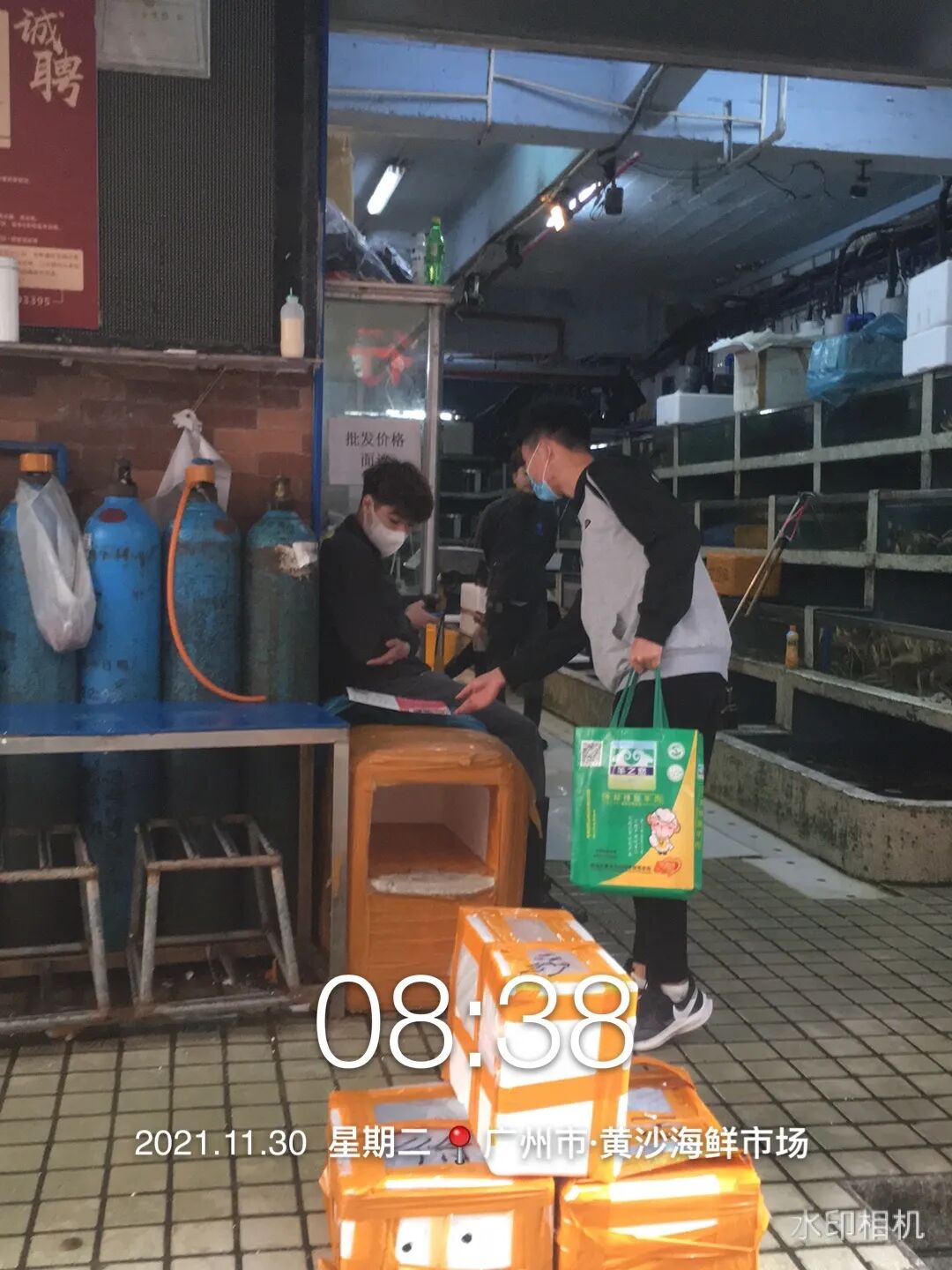水产品市场规模较大,种类非常多,大体分为淡水水产品区、海鲜水产品区、贝类交易区、冰鲜交易区、干货交易区等,招观团队针对市场内水产海鲜、速冻食品等商户进行了宣传邀约。