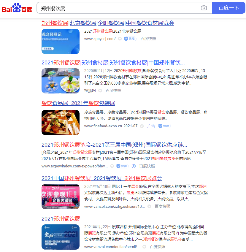 组委会在百度等各大网站持续投放广告,深度宣传,精准高效传达展会资讯。郑州餐饮展6月份百度词条总展现次数达到280万,词条主动点击量已超5万条,切实做到了全方位、深层次的传播,实现展会信息多渠道、立体化覆盖。