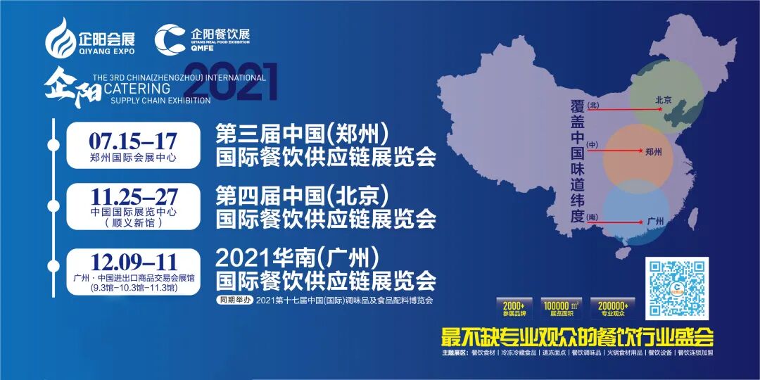 企阳餐饮展全国布局,先后于郑州、北京、广州等地巡回办展,2021第三届中国(郑州)餐饮供应链展览会立足郑州,致力于聚集全国餐饮行业优质供应商、渠道商、及采购商三大渠道,实现厂商精准对接,打造全国餐饮供应链贸易平台,本次规模再次升级。