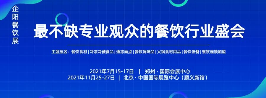 2021企阳餐饮展是目前餐饮行业全产业链较全,规模盛大的专业性展会,每年7月在郑州、11月在北京固定办展,积极引进展团及品牌企业,同时紧盯后疫情时代消费趋势及国家经济方向。因势利导,在增加展出规模的同时,做深做细观众邀约组织,让展会更富有实效。现已成为餐饮食材行业贸易洽谈及新品发布的首选平台。