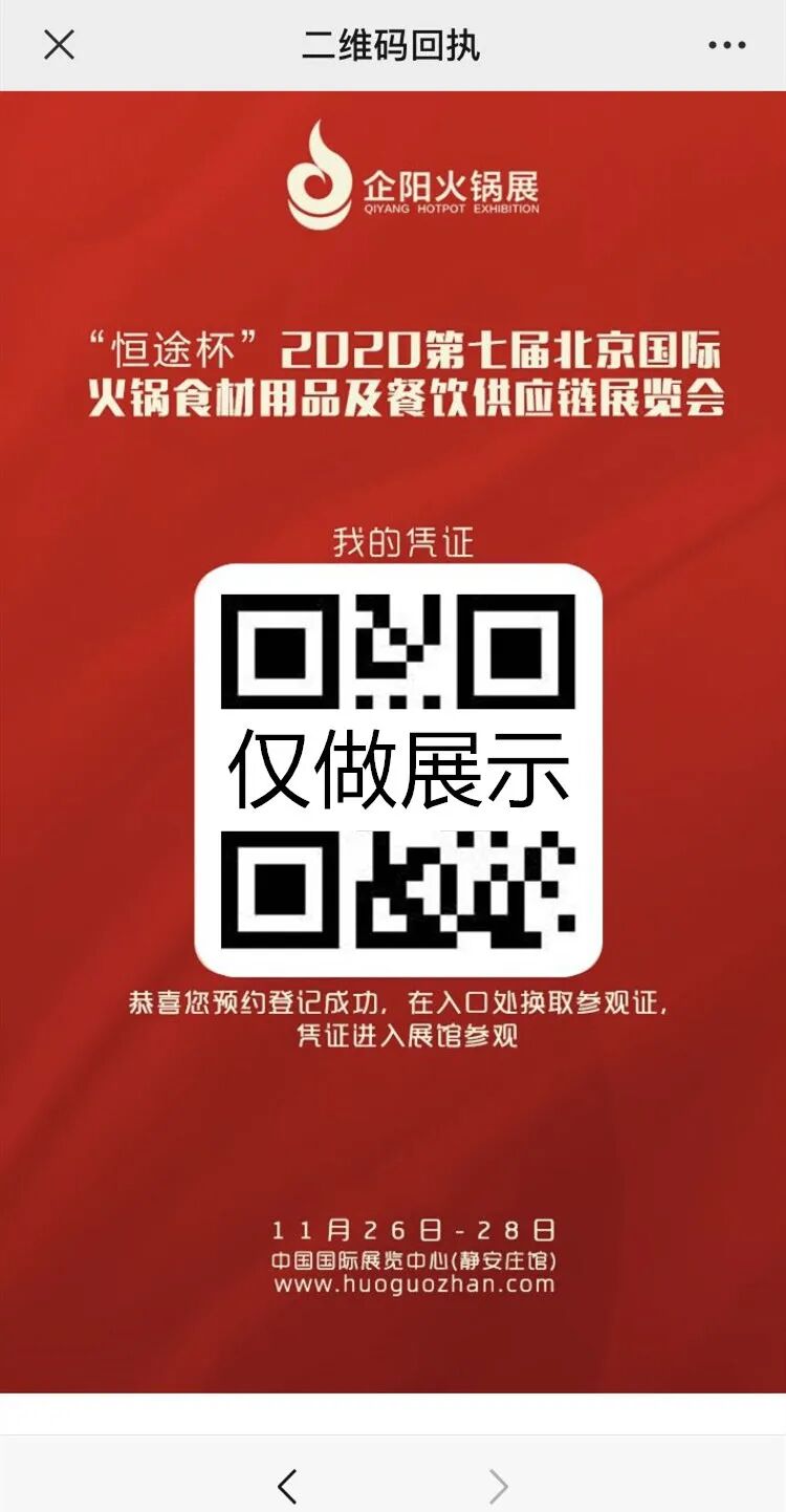 完成后,您将获取二维码回执,截图保存回执页面。现场凭借二维码回执到换票处换取参观证。