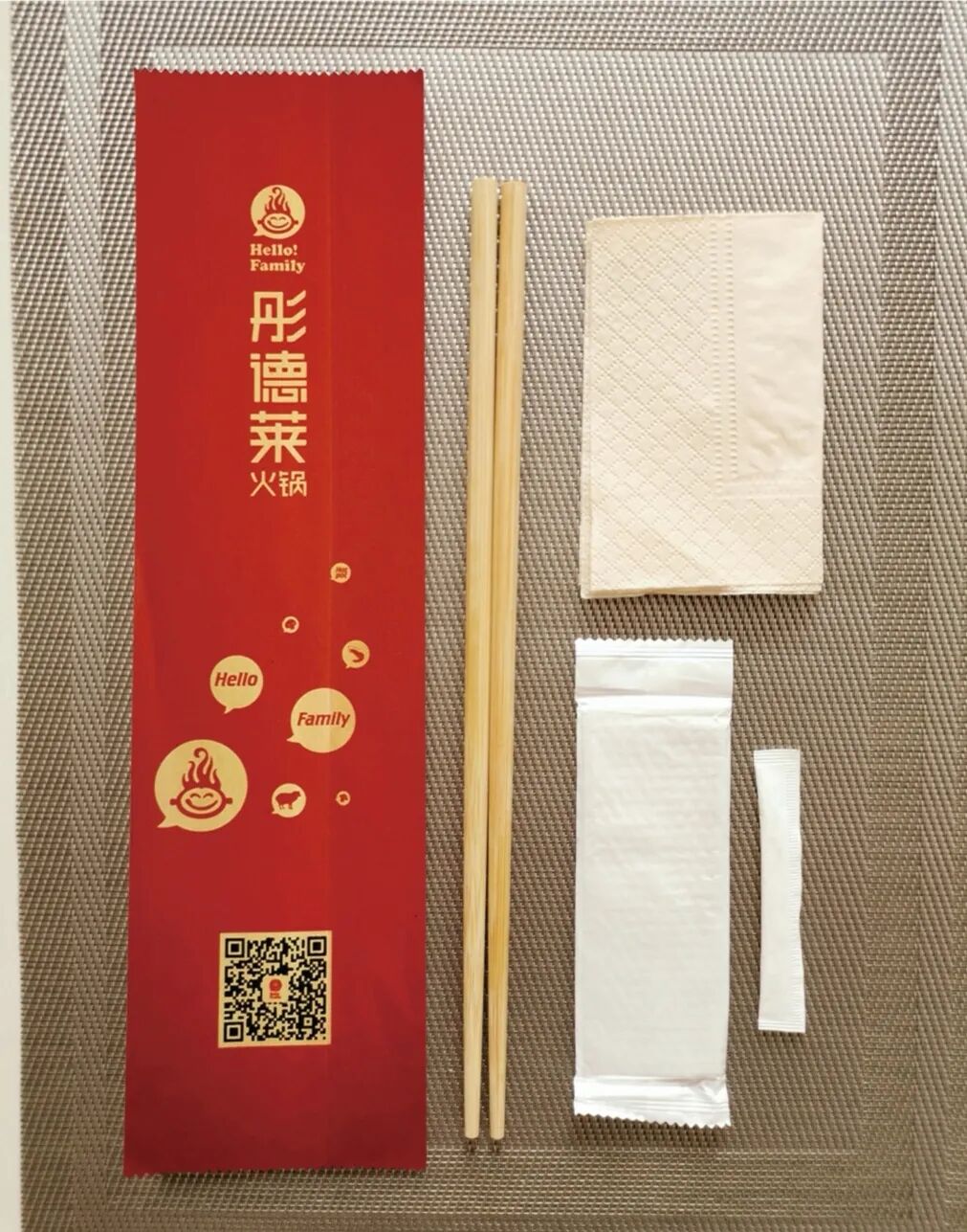 本厂家主要生产订做:餐巾纸印字、盒抽面巾纸、筷子四件套餐包、三件套餐包(湿巾、毛巾) 一次性筷子,压花餐巾纸。