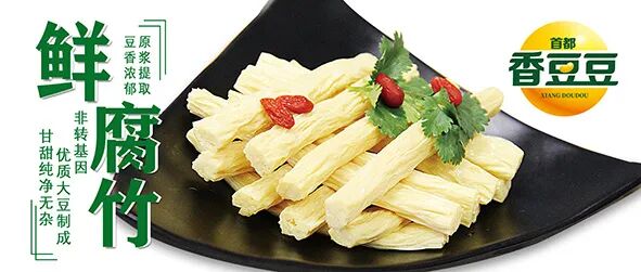 并将豆制品的种类增加到30多种,主要有鲜腐竹、三色腐竹、鲜油皮、黄金卷、鲜油皮丝等。