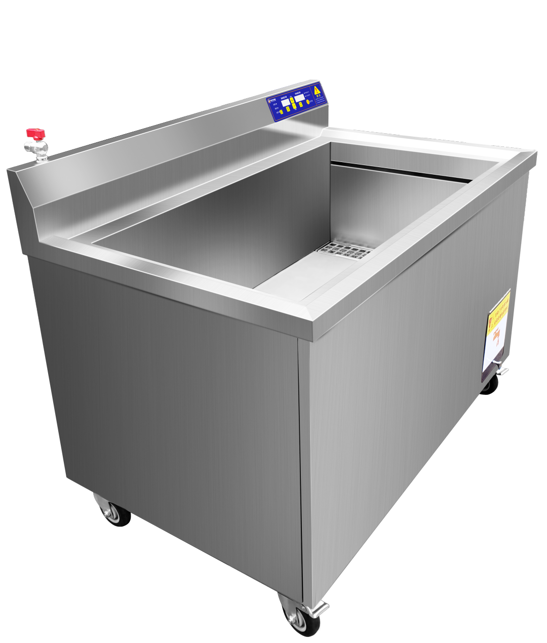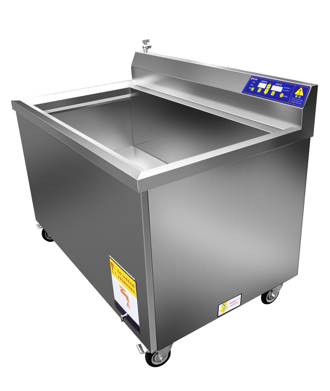(6)独创侧面瀑布式进水,用涡流、超声流将浮油自动赶出,保证清洗池水质清新。