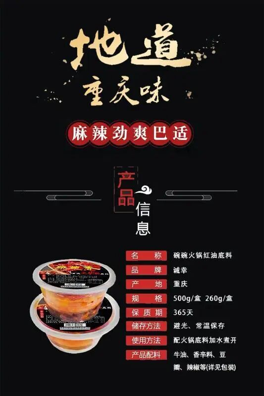 是一家专注于火锅底料、酱料、调味料、农业食材研发、制作与销售的一站式专业公司,其创业团队有20余年的从业经验,研发的"慧吃道““农香汇”系列产品火锅底料、粘料、麻辣清油底料、青双椒底料(青一色)烤鱼酱、菌王酱、香辣酱、重庆小面酱等麻辣鲜香。麻而不苦,辣而不燥。深受全国餐饮企业和食客好评——可根据客户需求定制研发,打造个性化的特色产品。