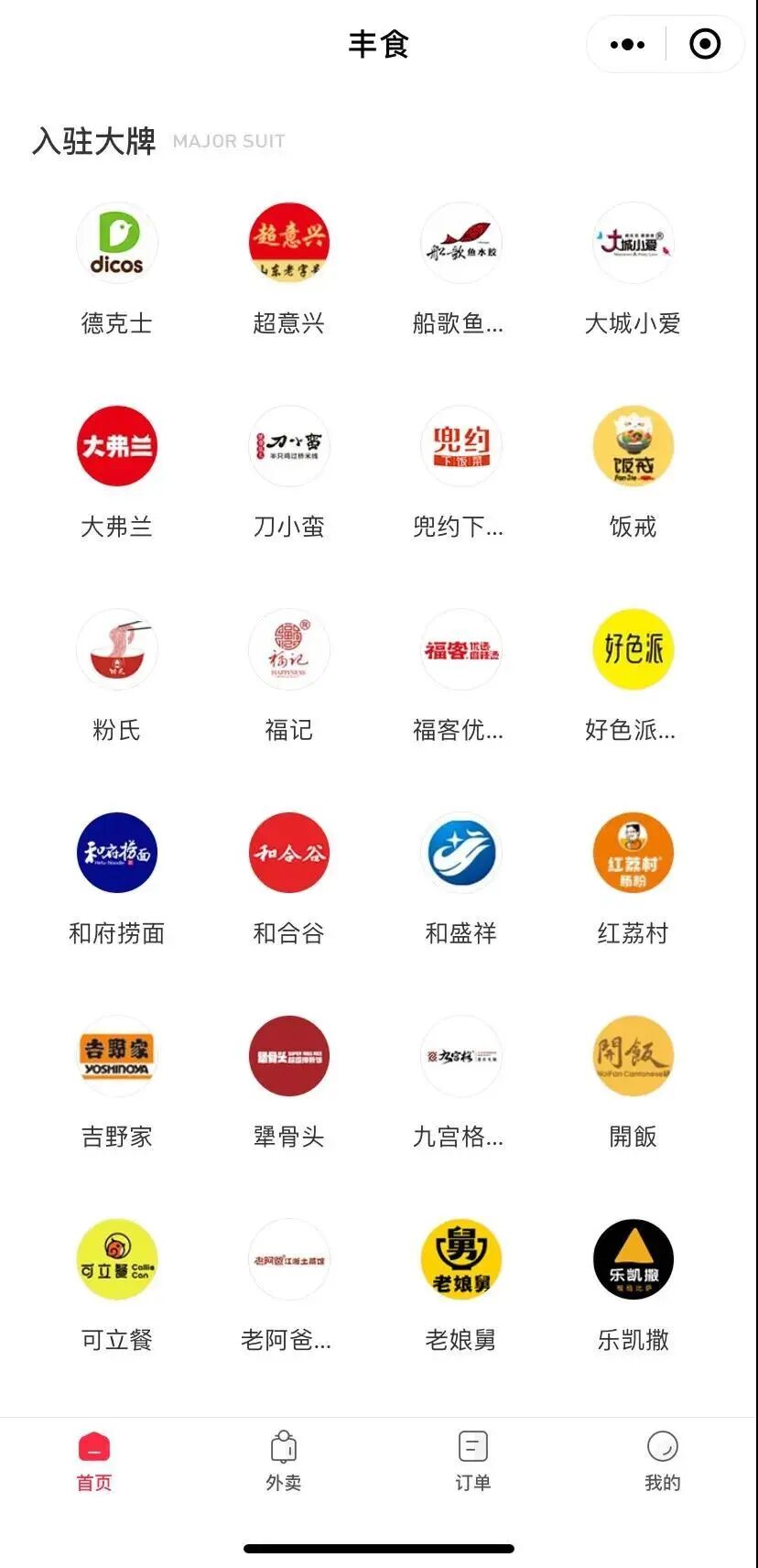 入驻丰食的品牌,图源丰食小程序