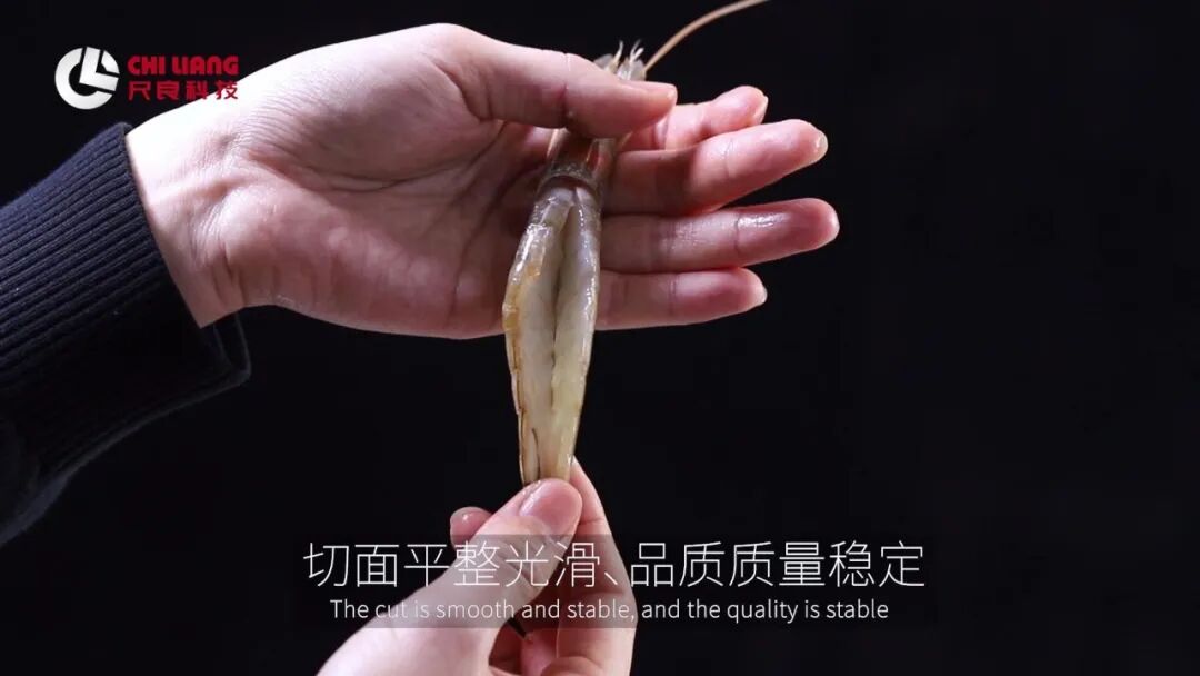 智能识别虾的大小,无论大虾、小虾,自动识别长度,都可实现只切虾尾、不切虾头。