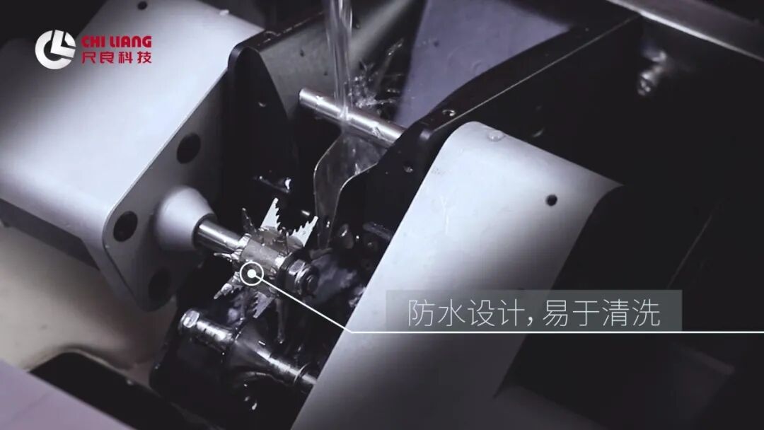采用自主研发设计的复合刀刷,使用寿命可切10000斤虾。实现切虾背和去虾线的操作一步完成,切虾速度可达约50kg/小时,显著提高剪虾效率。