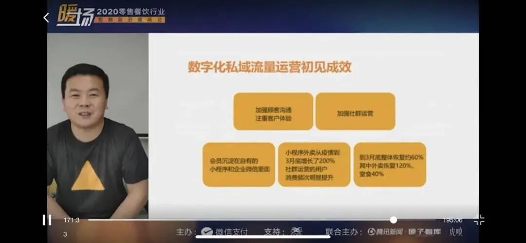 微信支付餐饮行业运营总监樊宇分享了3点运营方法: