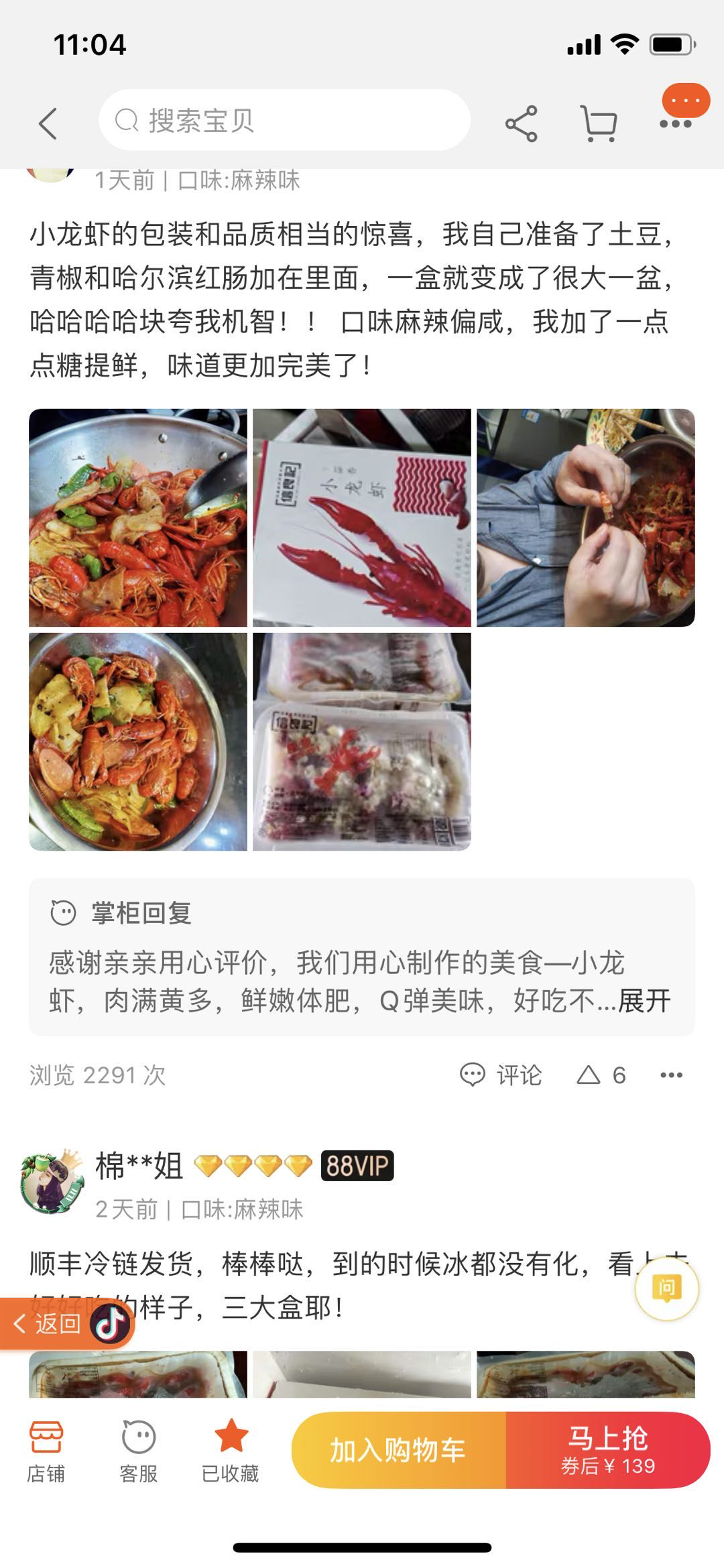 3、头部电商小龙虾品质超过预期,顾客留言几乎没有差评!