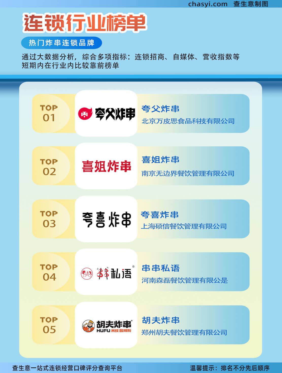 五大炸串连锁品牌凭借精准的品牌定位、卓越的产品品质、高效的招商策略、活跃的自媒体运营以及稳健的营收表现,成功登上连锁行业榜单,展现了炸串这一传统小吃在现代餐饮市场中的巨大商业价值与广阔发展前景。它们不仅是消费者品尝炸串美食的首选之地,更是投资创业者寻求加盟合作的理想伙伴。在未来,随着炸串行业竞争的日益激烈,这些品牌将持续引领行业创新,推动整个炸串连锁业态向着更加专业化、标准化、品牌化的方向迈进。