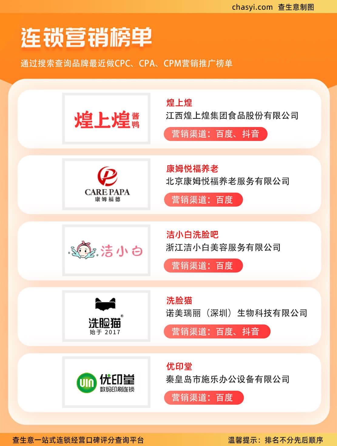 在如今竞争激烈的商业环境中,连锁营销作为一种高效的商业模式,正在逐渐崭露头角。各大品牌纷纷加入连锁营销的行列,以期在市场中占据一席之地。在众多品牌中,煌上煌、康姆悦福养老、洁小白洗脸吧、洗脸猫和优印堂这五大品牌脱颖而出,成为连锁营销榜单上的佼佼者。