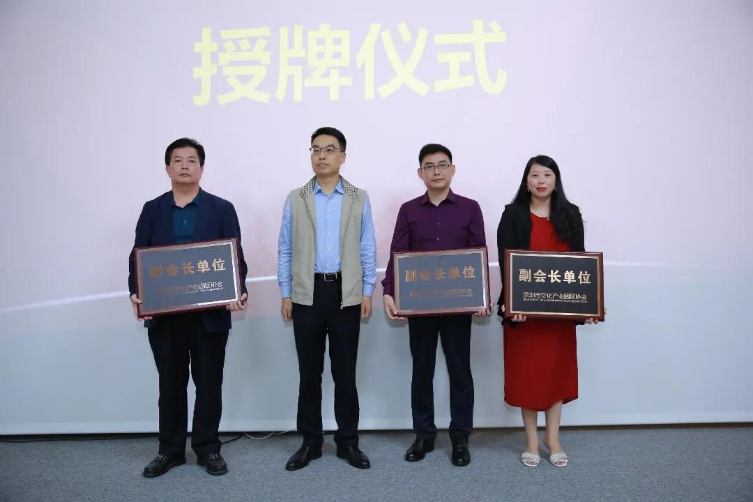 深圳市文化广电旅游体育局文化产业发展处处长熊德昌、副处长何勇分别为副会长单位、理事单位、会员单位授牌