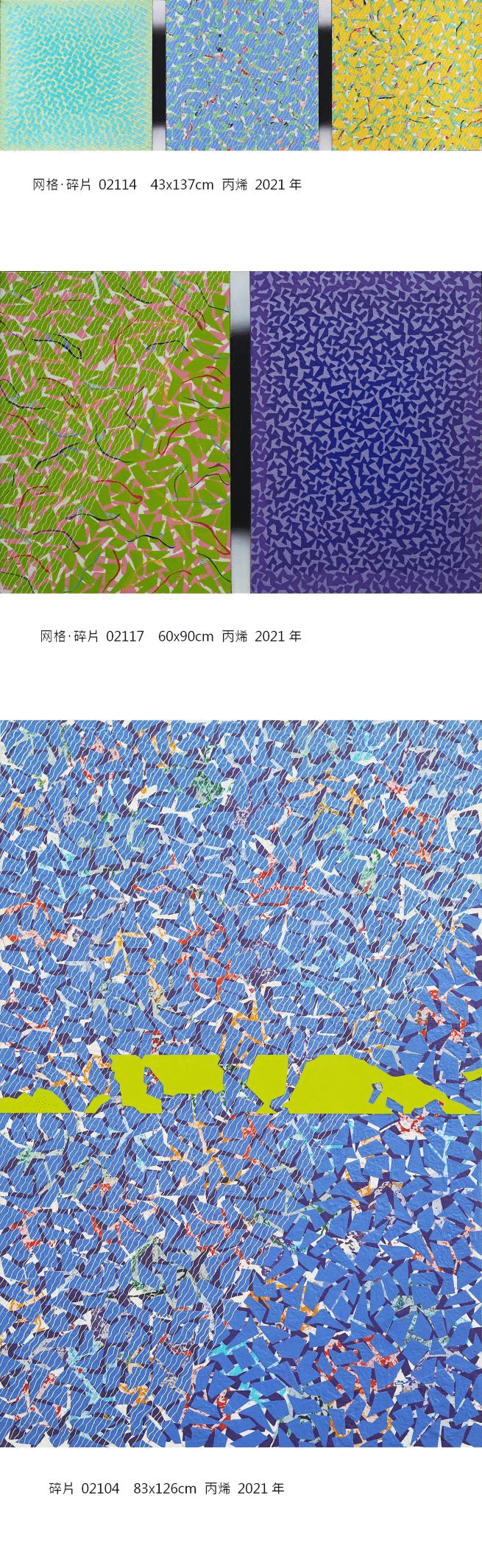 黄藏右的作品中融合的秩序与非秩序,规则与偶发、凸显与淡化、覆盖与显露等诸多二元性的并置,呈现出音乐般的律动和色彩间的跳跃,作品整体艺术风格在多元扩散与精炼提纯的稳定性中,取得一种活力生动的张力平衡。