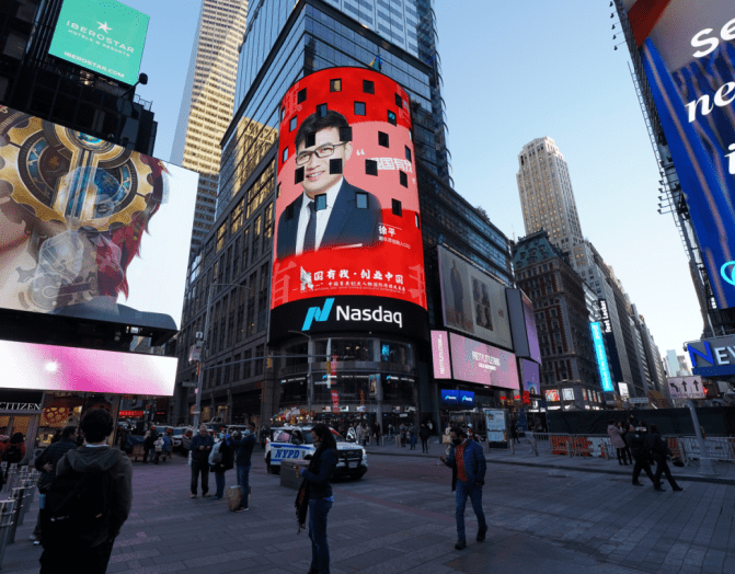 据了解,纳斯达克大屏位于美国纽约时代广场,时代广场被誉为“世界的十字路口”,云集了来往的世界精英,纳斯达克大屏更是引人瞩目。中国在此次抗疫过程中展示了大国风范,中国企业也表现出了顽强的韧性和坚定的用户使命,在此过程中涌现出了一批代表中国新经济新商业领导力的创业人物。