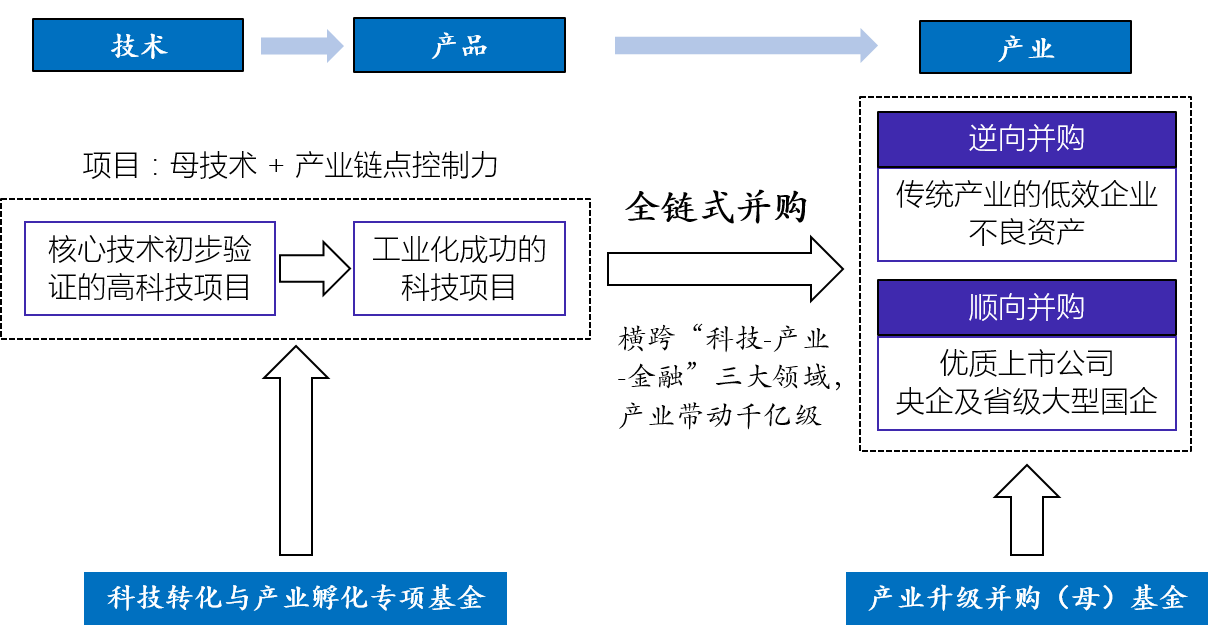 图1. 科技成果转化路径及科技金融产业三轴并购模式
