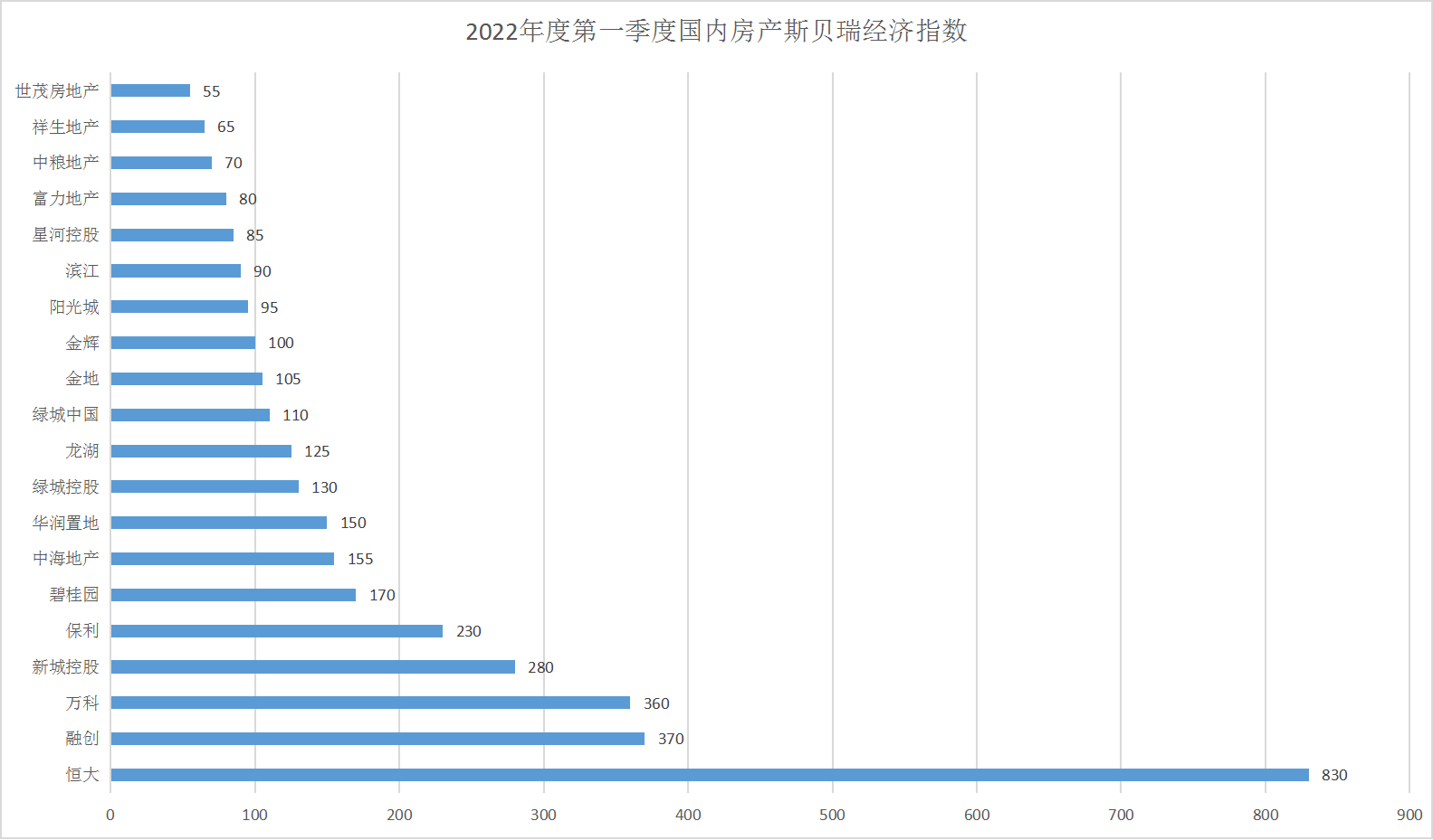 近日,CBERI斯贝瑞品牌经济研究院发布2022年度第一季度房产类品牌经济指数,恒大集团高分领先,凭借巨大优势获得第一名,融创集团和万科集团分别位列第二、三名。