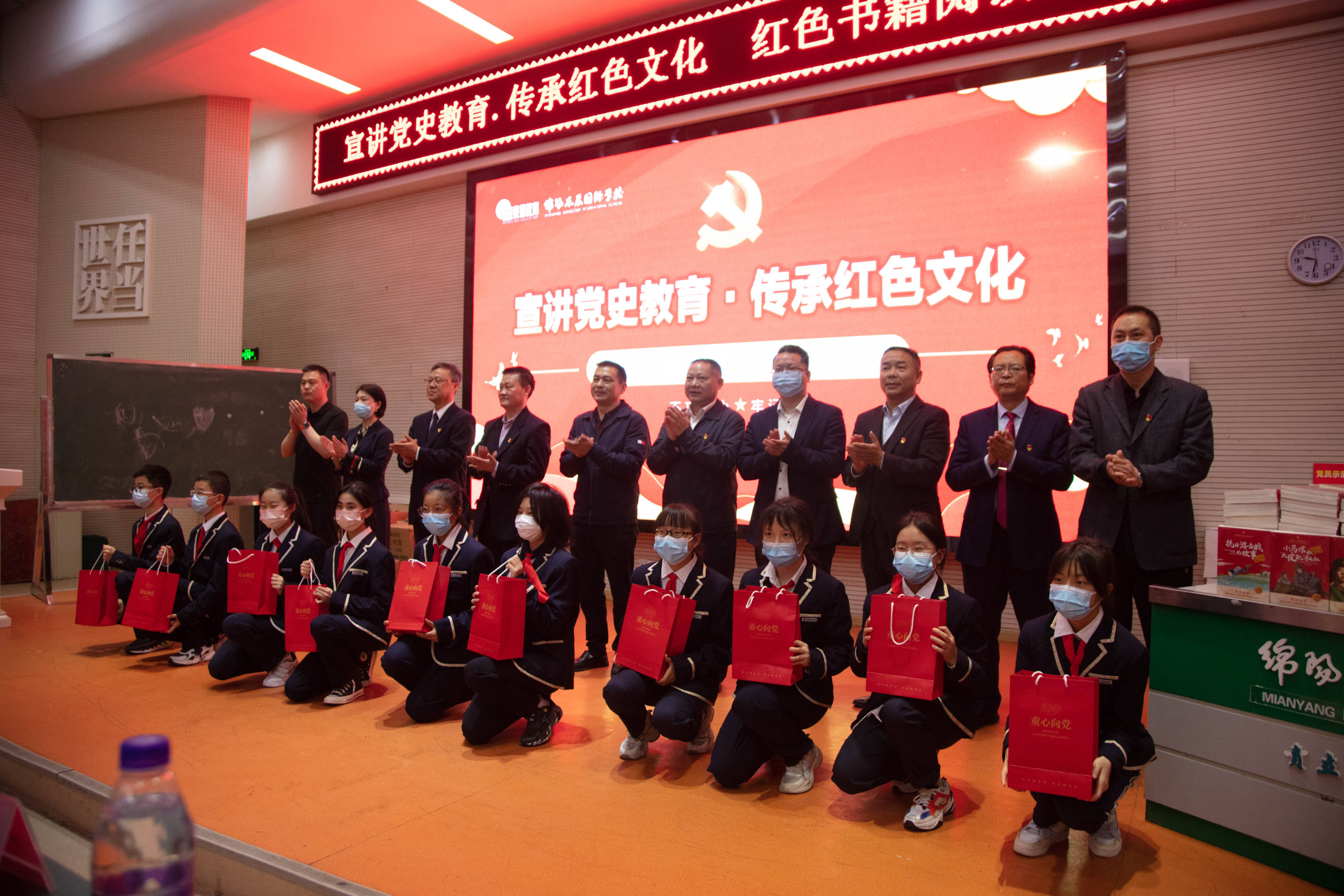 用好红色资源,传承好红色基因,把红色江山世世代代传承下去的重要指示;贯彻落实好四川省委常委、绵阳市委曹立军在今年3月份常委会上加强思想政治引领的讲话要求。23日,在第27个“世界读书日”之际,绵阳市人民政府副秘书长汤荣生及市教体局、四川长虹集团、东辰国际学校、社会各届人士代表等在东辰国际学校参加由绵阳市老区建设促进会举行的绵阳“弘扬革命精神 宣讲党史教育 传承红色文化 助推乡村振兴”的启动仪式和向全市中小学近万个班级每班(约41万中小学生)捐赠一套“童心向党”红色书籍(七本)的“从小学党史 永远跟党走”的主题党史教育阅读活动。“中国好人”梁高以一个普通共产党员宣读了“弘扬革命精神 宣讲党史教育 传承红色文化 助推乡村振兴”全民倡议书,宣讲团、学生、老师、社会各界代表等纷纷发言,表示我们有责任和义务用自己的感知和认识倡导阅读红色经典,感悟红色事迹,加强党史学习教育,坚持学习党史与新中国史、改革开放史、社会主义发展史相贯通,做到学史明理、学史增信、学史崇德、学史力行,引导我们绵阳大中小学生及社会各届坚定不移听党话、跟党走,让红色基因、革命薪火代代传承。