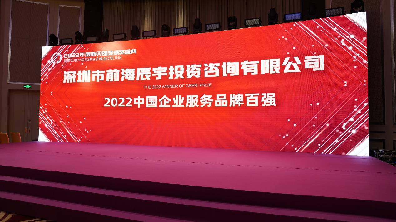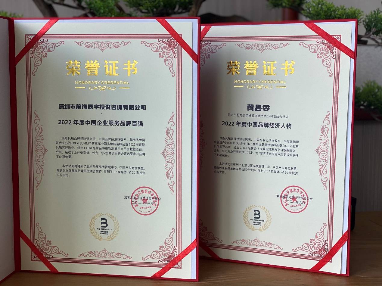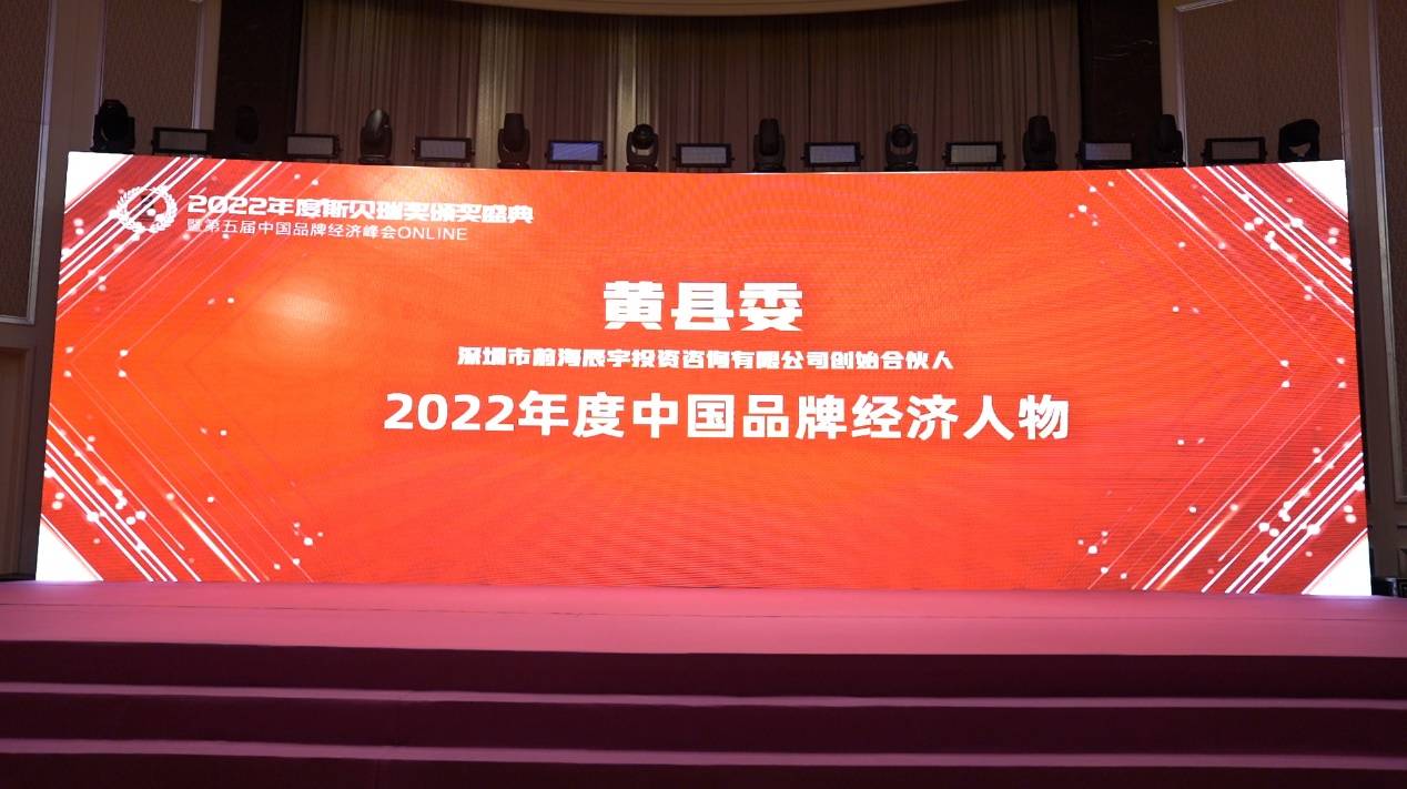 在活动中,作为全国领先的环球财务规划咨询服务机构,深圳市前海辰宇投资咨询有限公司(以下简称“辰宇”)以强大的品牌影响力与雄厚的综合实力,荣获「2022年度中国企业服务品牌百强」奖项。同时,辰宇创始合伙人黄县委更是凭借其在金融行业的杰出表现,荣膺「2022年度中国品牌经济人物」奖项。
