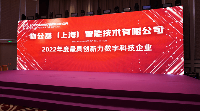在下午的活动上,主持人宣布物公基(上海)智能技术有限公司获评2022年度最具创新力数字科技企业。