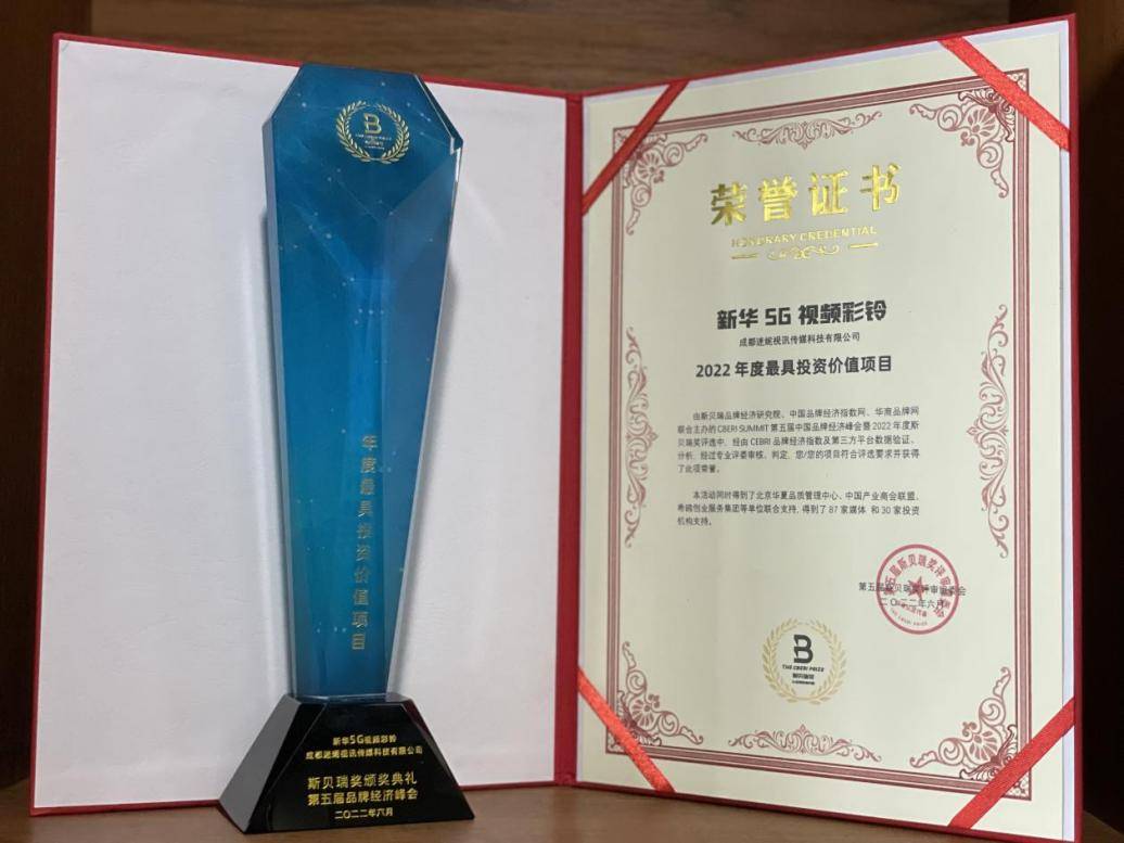 6月18日,以“数智先锋”为主题的2022斯贝瑞奖(The Cberi Prize)盛典暨第五届中国品牌经济峰会ONLINE活动于北京举行。现场,新华5G视频彩铃获评2022年度最具投资价值项目奖项。