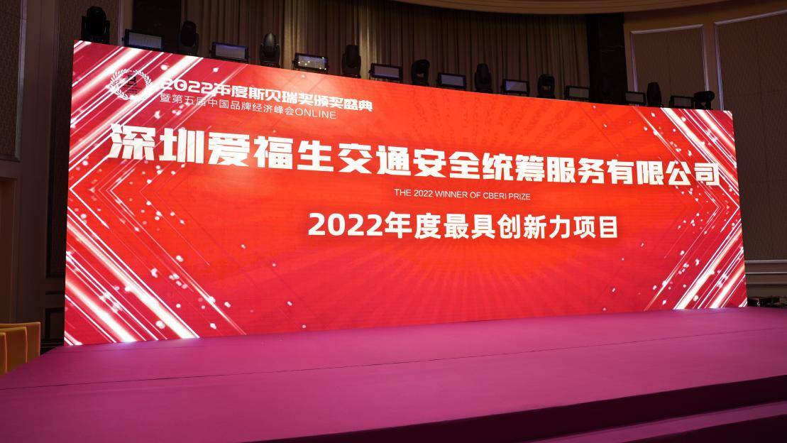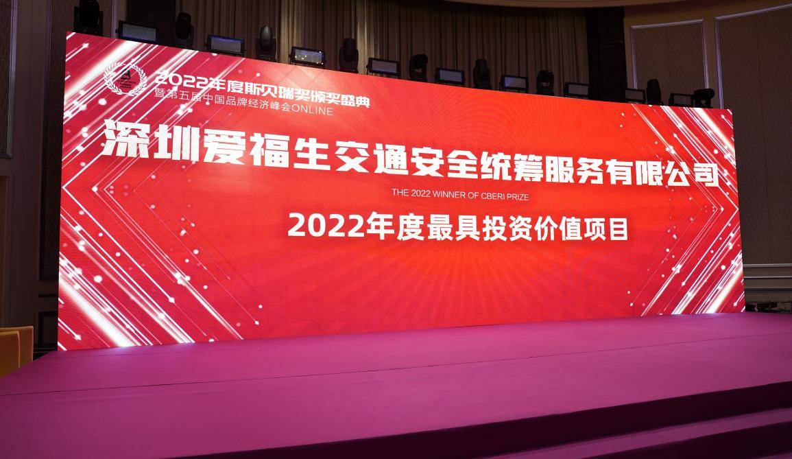 在下午的活动上,主持人宣布“深圳爱福生交通安全统筹服务有限公司”获评“2022年度最具创新力项目”及“2022年度最具投资价值项目”奖项。