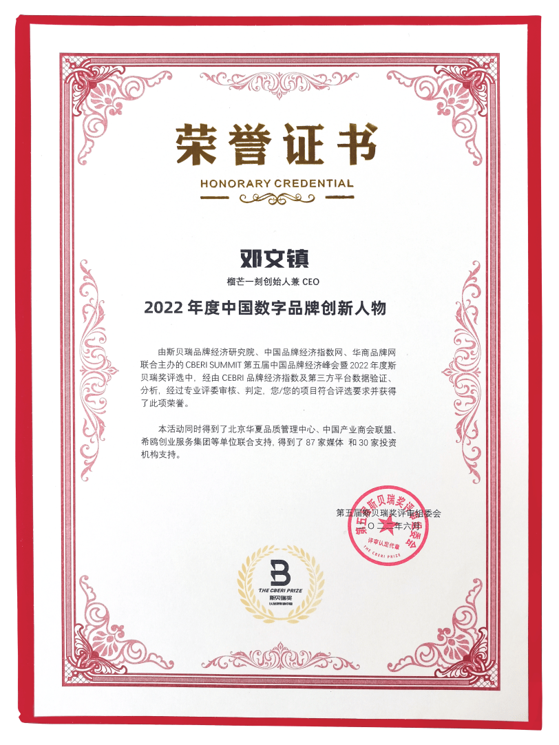 日前,以“数智先锋”为主题的2022斯贝瑞奖(The Cberi Prize)盛典暨第五届中国品牌经济峰会ONLINE活动于北京成功举行。本次大会由斯贝瑞品牌经济研究院、华商品牌网、希鸥创业服务集团、BFA华商品牌研究中心主办,中关村中小型科技文化企业促进会、创园资本、珂玺资本协办,吸引了近百家媒体的支持与报道。
