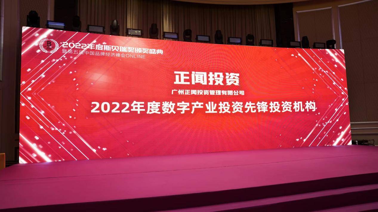 在下午的活动上,主持人宣布广州正闻投资管理有限公司获评斯贝瑞奖2022年度数字产业投资先锋投资机构。