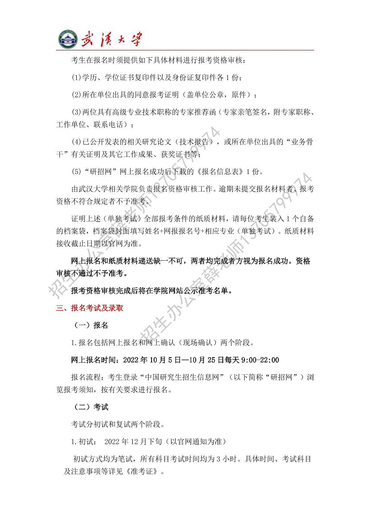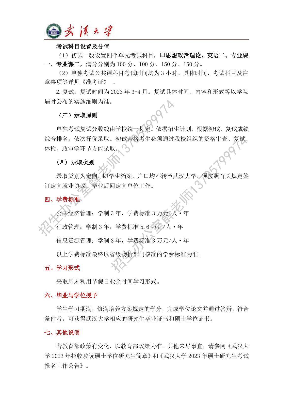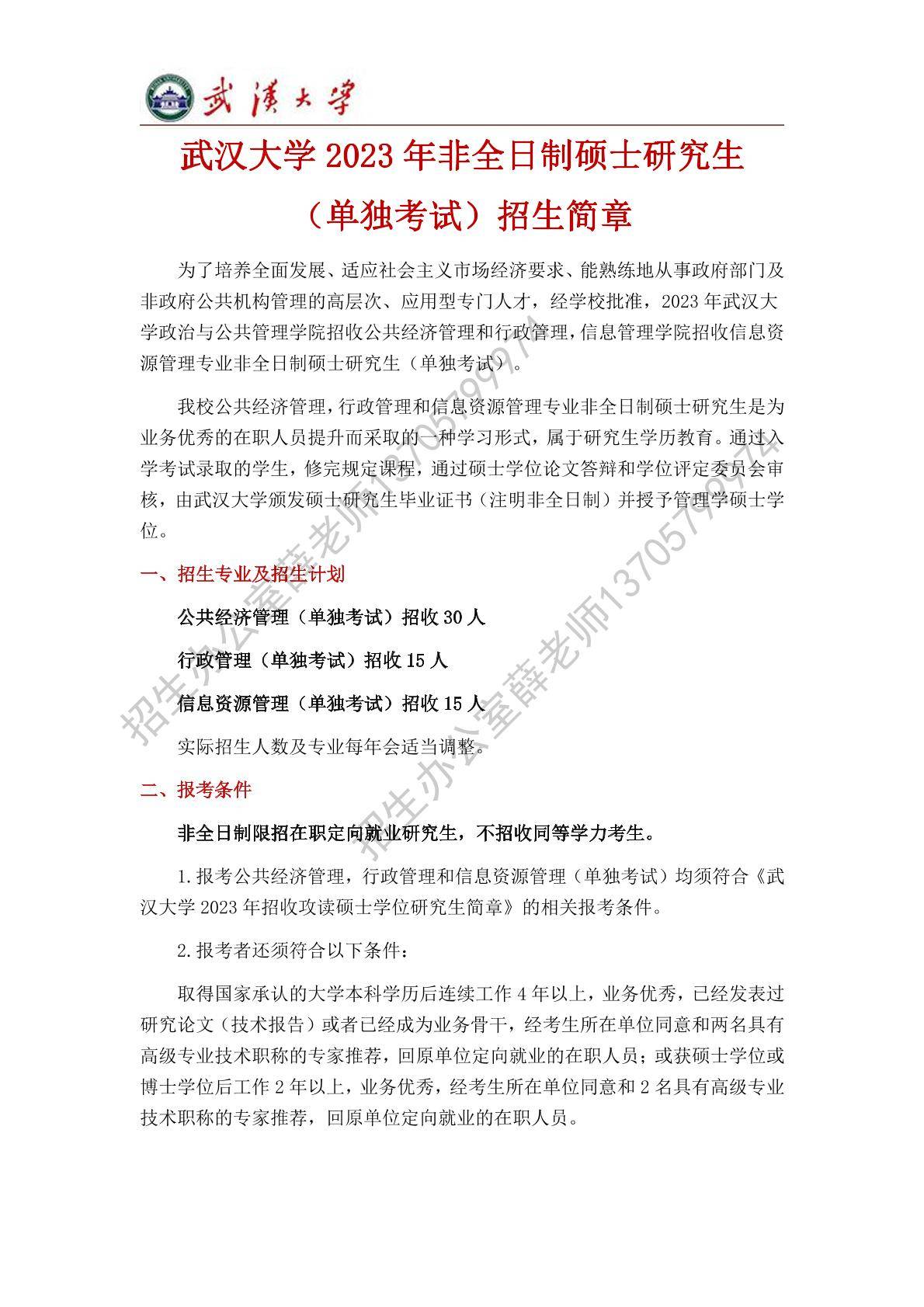 武汉大学2023年学术型硕士研究生(单独考试)招生简章