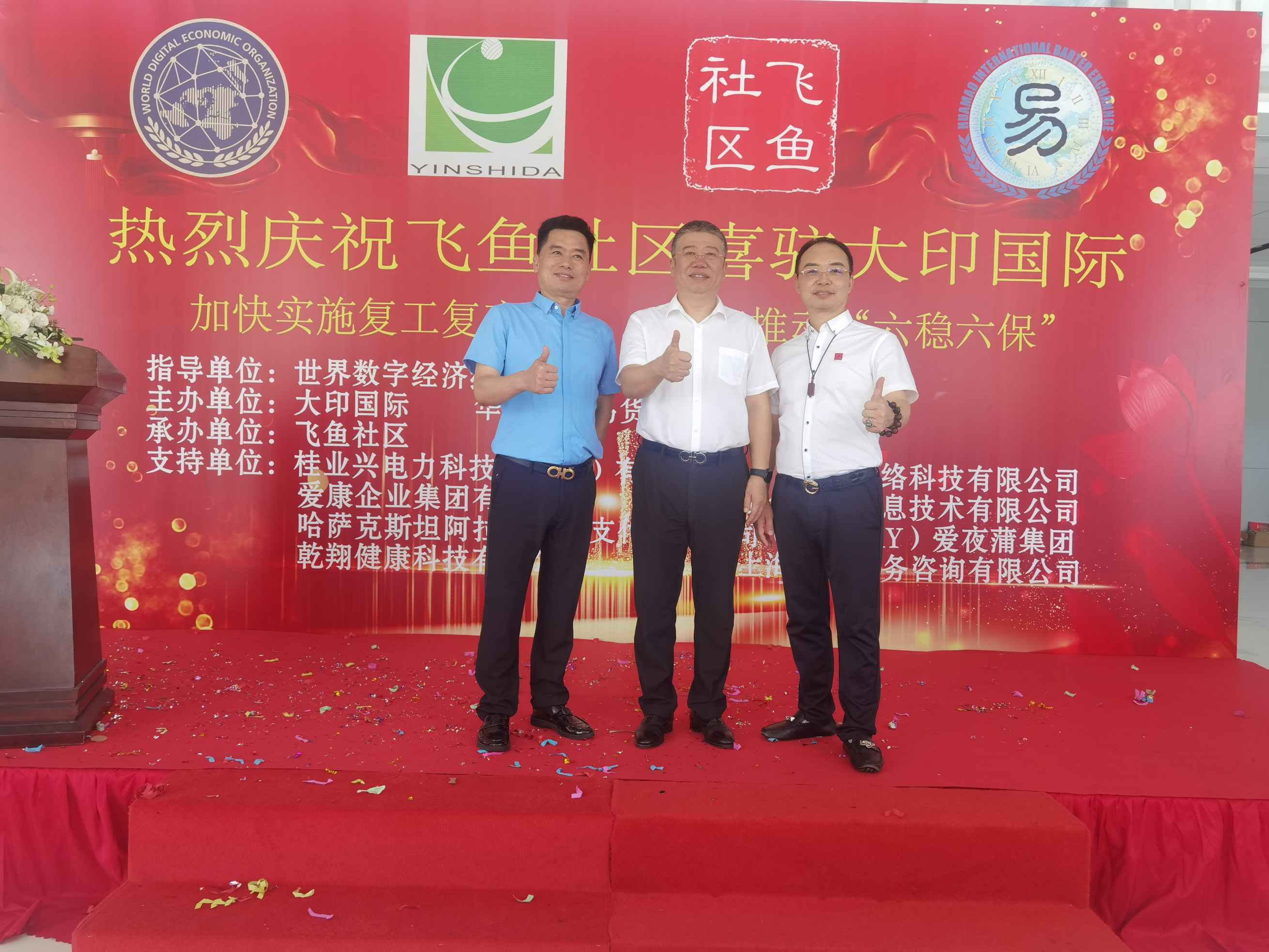 2022年8月19日,时值飞鱼社区创建四周年前夕,由大印国际、华贸国际易货贸易所主办的世界数字经济组织(WDEO)大虹桥服务中心·飞鱼社区联盟入驻仪式在上海大印国际一楼大厅举行,世界数字经济组织主席李晶、大印国际印建明,哈萨克斯坦阿拉丁电子支付有限公司汝总、飞鱼社区创始人静海飞鱼等出席活动,入驻仪式由世界数字经济组织秘书处干事玛盖主持。